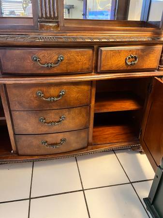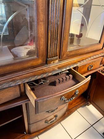 Matching curio cabinet also solid wood with 6 drawers and 2 cabinets. Shelves inside are glass