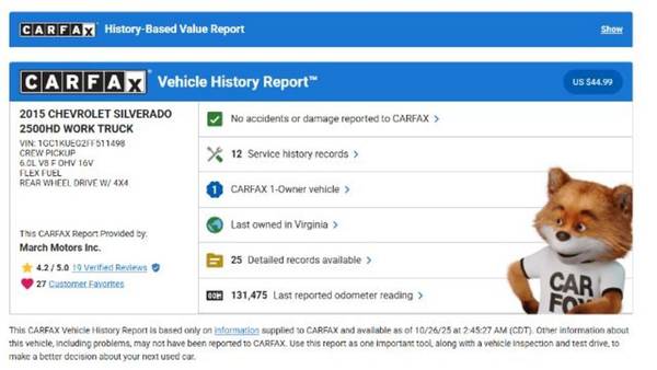 2015 CHEVROLET SILVERADO 2500HD 4X4 CREW CAB WORK TRUCK W/TOPPER