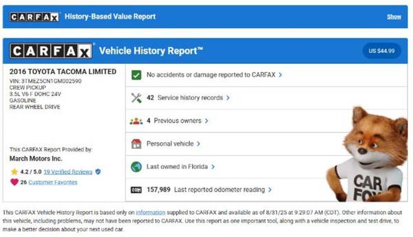 2016 Toyota Tacoma Limited for sale - Jacksonville, FL - craigslist
