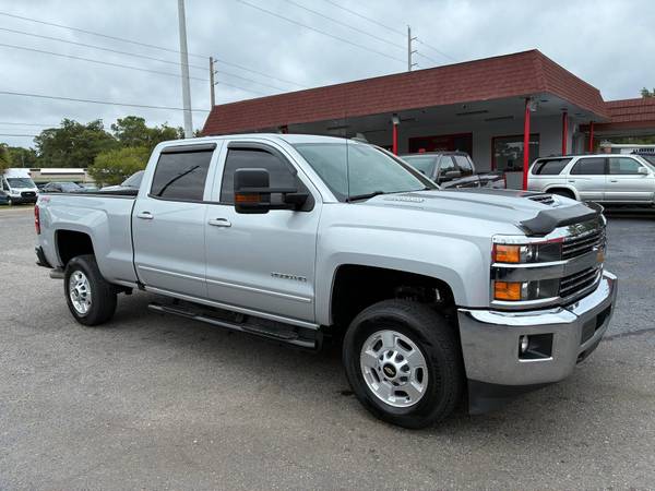 This 2017 Chevrolet Silverado 2500HD LT Crew Cab 6.6L Duramax TurboDiesel 4x4 is a one-owner Florida truck that has been meticulously maintained with 41 documented service records and no accidents on its history. It is in mint condition inside and out, reflecting the care it has received throughout its life. Powered by the legendary 6.6L Duramax V8 TurboDiesel paired with the Allison automatic transmission, it delivers an impressive 445 horsepower and 910 lb-ft of torque, making it an outstanding choice for heavy towing and hauling. With a towing capacity exceeding 14,000 lbs and a payload rating over 3,000 lbs, this Silverado 2500HD blends serious work capability with everyday comfort and reliability.
