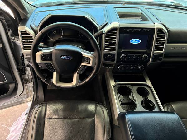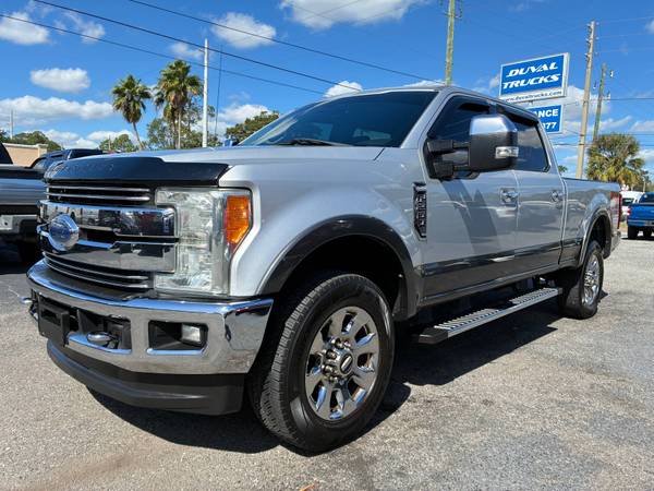 The 2017 Ford F-250 Super Duty Lariat 6.2L V8 4x4 is a powerful and refined heavy-duty pickup that blends work-ready capability with premium comfort. Its 6.2-liter V8 engine delivers 385 horsepower and 430 lb-ft of torque, paired with a 6-speed TorqShift automatic transmission and a robust 4x4 drivetrain. This example has had two previous owners, 23 documented service records, and no accidents, reflecting excellent maintenance and care. Built on Ford's fully boxed high-strength steel frame with a military-grade aluminum-alloy body, it offers outstanding durability and towing performance up to 13,000 pounds. The Lariat trim elevates comfort and technology, featuring leather seating, SYNC 3 infotainment, and advanced safety systems-all while retaining the rugged strength that defines the Super Duty lineup.