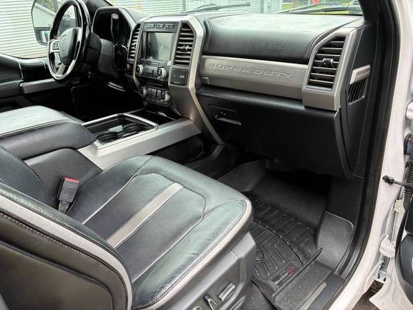 The 2018 Ford F-350 Super Duty Platinum 6.7L Power Stroke TurboDiesel 4x4 stands as a top-tier blend of strength, sophistication, and capability. This one-owner truck is in absolute mint condition, showcasing the refinement and commanding presence expected from the Platinum trim. Its legendary 6.7L Power Stroke V8 delivers immense power and torque while maintaining smooth, quiet operation, paired with Ford's heavy-duty 6-speed TorqShift automatic transmission and advanced 4x4 drivetrain for unmatched towing and hauling performance. Inside, the cabin surrounds you with premium leather, brushed aluminum accents, and advanced technology, making it equally at home on rugged job sites or long highway cruises. A perfect example of luxury meeting heavy-duty performance.