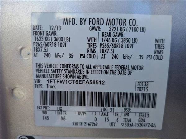 * Equipment Group 302A Luxury  * Engine: 3.5L V6 Ecoboost  * Xlt Chrome Package  * Trailer Tow Package  * Trailer Brake Controller  * SiriusXM Satellite Radio  * 3.15 Axle Ratio  * Ingot Silver Metallic  * Steel Gray; Cloth 40/20/40 Front Seat  * Transmission: Electronic 6-Speed AutomaticThis vehicle includes a Money-Back Guarantee* and passed our precise inspection process. Best of all the price you see is the price you pay. No haggling. No back and forth. No pressure. And this price is so good it is guaranteed. *Money-Back Guarantee is valid for 5 days or 250 miles, whichever comes first. Subject to certain terms and conditions. See store for details. Some restrictions apply.This 2014 Ford F-150 XLT is proudly offered by AutoNation USA Jacksonville This Ford includes: TRANSMISSION: ELECTRONIC 6-SPEED AUTOMATIC A/T 6-Speed A/T STEEL GRAY, CLOTH 40/20/40 FRONT SEAT Split Bench Seat Cloth Seats *Note - For third party subscriptions or services, please contact the dealer for more information.* The 2014 Ford exterior is finished in a breathtaking Ingot Silver Metallic, while being complemented by such a gorgeous Steel Gray interior. This color combination is stunning and absolutely beautiful! Based on the superb condition of this vehicle, along with the options and color, this Ford F-150 XLT is sure to sell fast. More information about the 2014 Ford F-150: With three cab styles, three different bed lengths, and a wide range of models and optional equipment, there's an F-150 configuration for every truck need. Ford also boasts that its F-150 has the only full-size pickup with 6-speed automatic transmissions across the entire lineup. Another feature that stands out, even against rival models from Ford, Chevy and GMC is MyFord Touch, an all-encompassing connectivity and infotainment system. Interesting features of this model are A model and configuration for every truck need, standout refinement and ride comfort, fuel-efficient powertrain lineup, and strong towing and payload ratings
