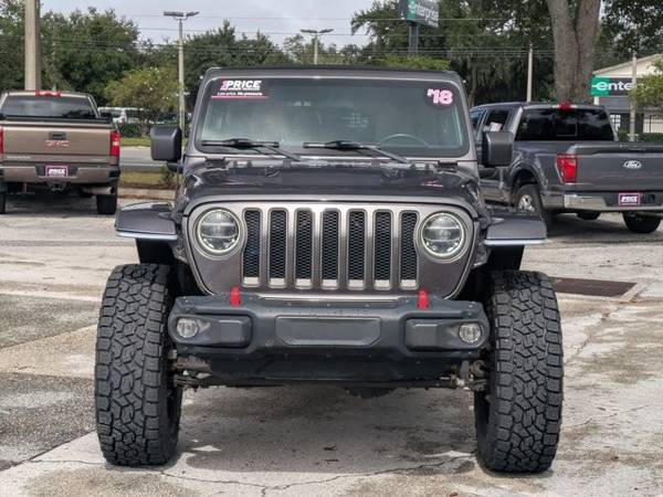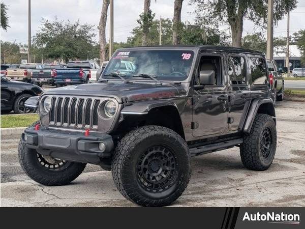 * Sky 1-Touch Power Top * Transmission: 8-Speed Automatic (850Re) * Black/Heritage Tan; Leather Trimmed Bucket Seats * Steel Bumper Group * Led Lighting Group * Mopar Hinge-Gate Reinforcement * Leather Seats * Body Color Fender Flares * Mopar All-Weather Floor Mats * Keyless Start * Convertible Hardtop * Engine: 3.6L V6 24V Vvt Upg I W/Ess * Granite Crystal Metallic Clearcoat * Tires: Lt285/70R17C Bsw Off-Road * Wheels: 17" X 7.5" Polished W/Black PocketsThis vehicle includes a Money-Back Guarantee* and passed our precise inspection process. Best of all the price you see is the price you pay. No haggling. No back and forth. No pressure. And this price is so good it is guaranteed. *Money-Back Guarantee is valid for 5 days or 250 miles, whichever comes first. Subject to certain terms and conditions. See store for details. Some restrictions apply.2018 Jeep Wrangler Unlimited Rubicon – 63,198 Miles Adventure awaits in this rugged and trail-ready 2018 Jeep Wrangler Unlimited Rubicon. With just 63,198 miles, this iconic 4x4 is built to handle off-road challenges while still providing comfort and convenience for everyday driving. Equipped with a 3.6L V6 engine and legendary 4WD capability, the Rubicon features Rock-Trac® heavy-duty part-time 4WD, locking differentials, sway bar disconnect, and off-road suspension, making it one of the most capable Wranglers ever built. Its bold styling, signature seven-slot grille, and removable top and doors ensure you’ll turn heads on the road and enjoy open-air freedom on the trails. Inside, you’ll find a versatile cabin with premium cloth seating, Uconnect infotainment with touchscreen display, Bluetooth connectivity, and available navigation. The spacious Unlimited design provides extra rear passenger room and cargo space, making it as practical as it is adventurous. Whether you’re conquering tough terrain or cruising through the city, this 2018 Jeep Wrangler Unlimited Rubicon delivers the ultimate Jeep experience. Well-maintained and ready for its next owner, it’s the perfect combination of capability, style, and fun