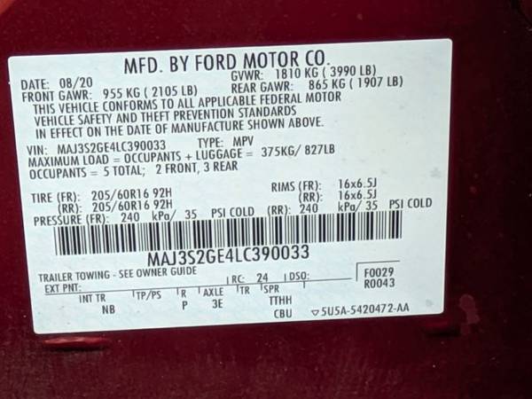 * Sun/Moonroof * Ruby Red Metallic Tinted Clearcoat * Keyless Start * Ebony Black; Unique Cloth Heated Front Bucket Seats * Engine: 1.0L Ecoboost * Equipment Group 200A * Transmission: 6-Speed Automatic W/SelectshiftAUTONATION CHEVROLET SOUTH CLEARWATER727-231-1291You can find this 2020 Ford EcoSport SE and many others like it at AutoNation Chevrolet South Clearwater. This Ford includes: ENGINE: 1.0L ECOBOOST 3 Cylinder Engine Gasoline Fuel Turbocharged *Note - For third party subscriptions or services, please contact the dealer for more information.* The CARFAX report for this 2020 Ford EcoSport SE highlights that it's a One-Owner vehicle, and for good reason. A One-Owner vehicle gives you the feel of owning a new vehicle without paying the new car price. On almost any road condition, this Ford EcoSport SE offers solid performance, reliability, and comfort. In addition to being well-cared for, this Ford EcoSport has very low mileage making it a rare find.
