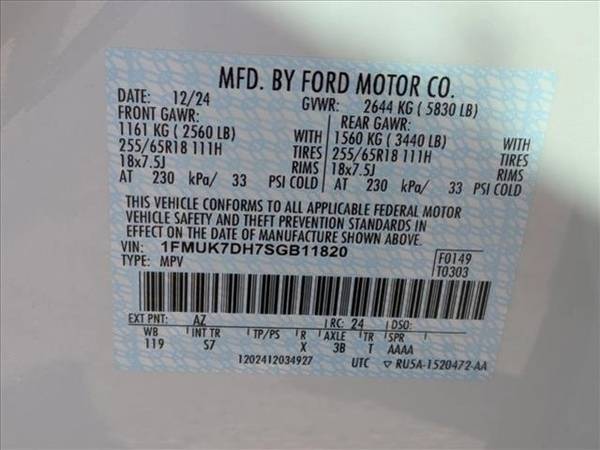 * Active Comfort Package * Star White Metallic Tri-Coat * Navigation System * 3rd Row Seat * Lane Keeping Assist * Keyless Start * Rear Spoiler * Engine: 2.3L Ecoboost I-4 * Equipment Group 200A Standard Package * Light Space Gray/Onyx; Heated Activex Seating Material Captain'S Chairs * Transmission: 10-Speed AutomaticThis vehicle includes a Money-Back Guarantee* and passed our precise inspection process. Best of all the price you see is the price you pay. No haggling. No back and forth. No pressure. And this price is so good it is guaranteed. *Money-Back Guarantee is valid for 5 days or 250 miles, whichever comes first. Subject to certain terms and conditions. See store for details. Some restrictions apply.This Ford includes: EQUIPMENT GROUP 200A STANDARD PACKAGE ACTIVE COMFORT PACKAGE Fog Lamps Remote Engine Start Heated Steering Wheel Universal Garage Door Opener TRANSMISSION: 10-SPEED AUTOMATIC (STD) A/T 10-Speed A/T STAR WHITE METALLIC TRI-COAT LIGHT SPACE GRAY/ONYX, HEATED ACTIVEX SEATING MATERIAL CAPTAIN'S CHAIRS Power Passenger Seat Power Driver Seat Passenger Adjustable Lumbar Driver Adjustable Lumbar Premium Synthetic Seats ENGINE: 2.3L ECOBOOST 4 Cylinder Engine Gasoline Fuel Turbocharged *Note - For third party subscriptions or services, please contact the dealer for more information.* Don't believe us!?! That's okay!! We've got the CARFAX!! One Owner, and only one more to go! S-U-V = Start Ur Voyage. You only deserve the best, so why settle for anything less?? Drive away in this luxurious vehicle today. We have all the records for this Ford, and we'll hand them over to you! This vehicle is so clean the interior sparkles!! Hmm whatcha sayy, this Ford has a factory warrantay! Don't hate! Navigate! No one cares how pretty your car is if you've got a blow-out on the side of the road. Lucky for you, this Ford has a brand new set of tires that will take good care of you.