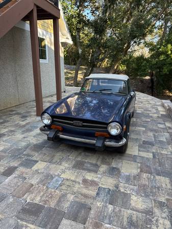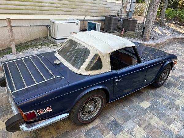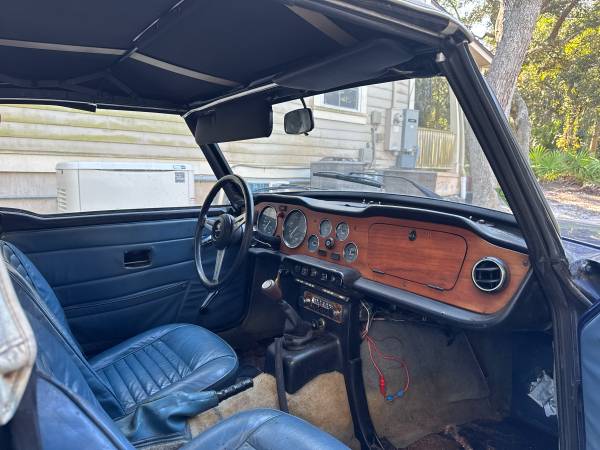 1974 TR6 for sale. Car runs and drives. No significant rust. Not a parts car but a solid vehicle for restoration. Wire wheel original option. Soft top in good condition.