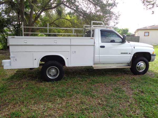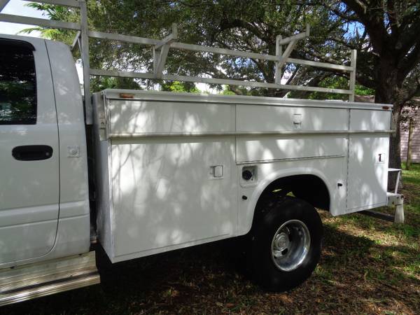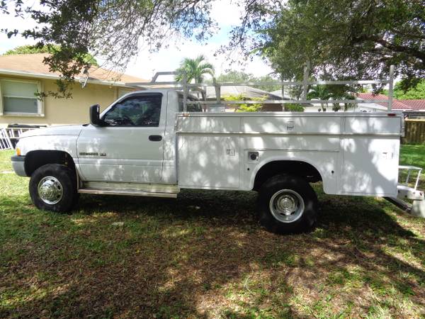 2002 DODGE RAM 3500 1 TON DUAL WHEELS UTILITY SERVICE TRUCK 5.9 V-8(( GAS )) 4x2 AUTO A/C POWER-STEERING HYDRO BOOST BRAKES HEAVY DUTY ALUMINUM LADDER RACK (((((146,902)))) ORIGINAL MILES GOOD TIRES THE BODY AND INTERIOR ARE IN GREAT SHAPE!!! AND THE ENGINE & TRANSMISSION ARE STRONG!!! NO OIL LEAK IS TRUCK WAS FORMALLY OWNED BY THE CITY OF MIAMI DADE COUNTY SCHOOL BOARD!! THAT WHY THE MILES IS SO LOW ,THERE IS NOTHING WRONG WITH THIS TRUCK!!ASKING $3,700IN CASH FOR A QUICK SALE!! IF YOU HAVE ANY QUESTIONS PLEASE CALL ME AT show contact info