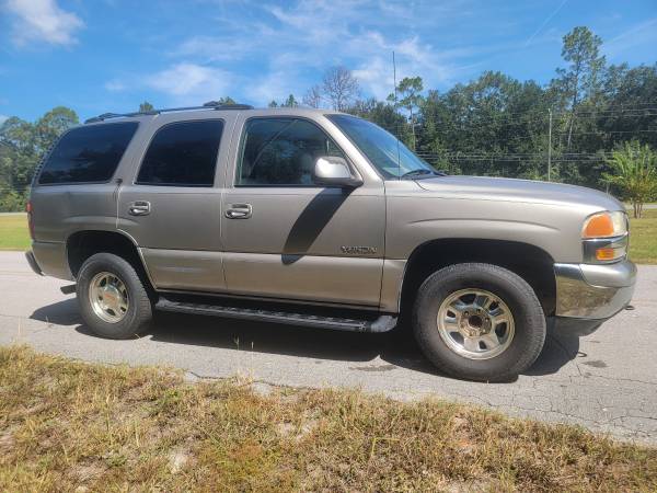 2002 GMC Yukon, 4D SUV, RWD, 4.8L V8 Automatic, nice tires, 2 brand new tires on back, spare, tow hooks, Reese hitch, cold air, dual controls, heat, radio, CD, cassette, cruise control, power windows and locks, leather interior, very clean. Was my daily driver, very dependable.