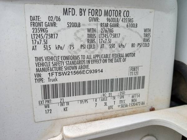 ** 2006 FORD F250 SUPERDUTY SUPERCREW 4X4 WORK TRUCK!!! $5995!!! GET TO WORK!!! 5.4L, Automatic, AC, stereo (display out), 4X4, tow package w/electric brake hookup, sprayed in bedliner, has rear bed net/no tailgate. Vinyl interior (drivers side ruff ). Rubber mat interior.145k ORIGINAL MILES!!!, GREAT Running and driving work truck, all original has NOT been modified. No rust or damage, has minor cosmetics/dings scratches etc. Not a new truck but SOLID Heavy Duty F250 SUPERDUTY TRUCK!! Cold AC, everything works! VIN : 1FTSW21566EC93914 Clean clear title, ONLY $5995 & NO DEALER FEEES!!! Call show contact info
