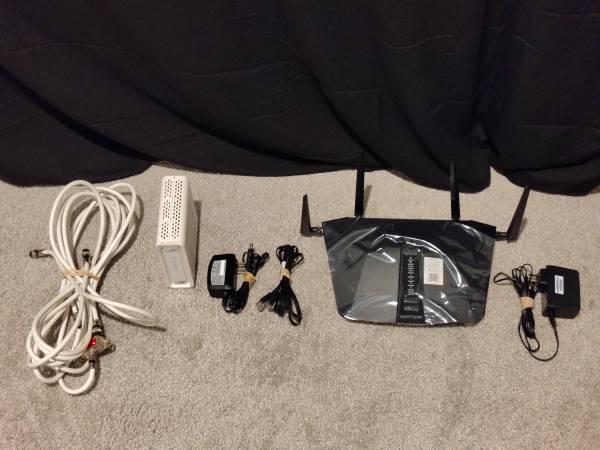 I'm selling a Netgear Wifi Router AX5400 and Modem Arris SB8200 for Xfinity. Both have been tested and work fine. We purchased earlier this year, but where we moved to we're only allowed to have AT&T. This is everything you need for Xfinity / Comcast Interntet: Wireless Wifi Router, Modem, All Cords, and even the Cable / Splitter. You will have to reset each and set up at your location. Looking to sell everything together for $40.