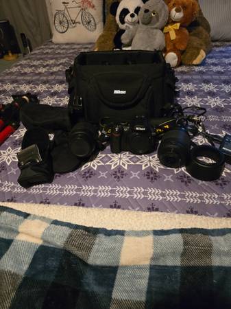 Complete set with extra lens, battery, case, flash and I have a camera stand if wanted.