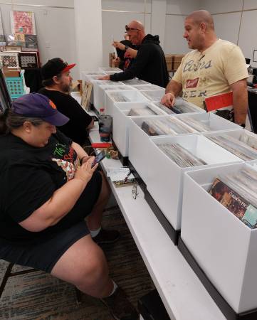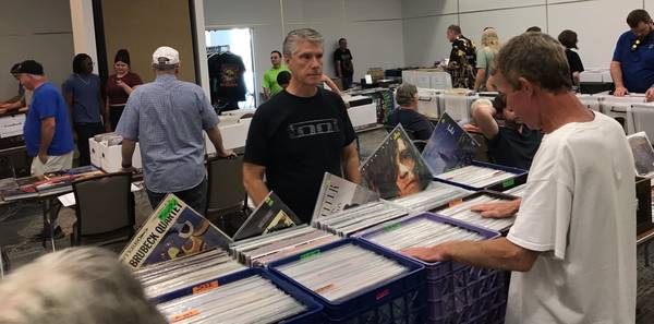 This is a free admission show, in a comfortable, well-lit, air-conditioned venue, with an ATM and restaurant on site, and plenty of free parking! Even better, we give away brand new, still sealed albums ALL SHOW LONG via our trivia questions contests! For those not so good at trivia, we make it easy to win- we hide GOLDEN TICKETS within the show room- if you find one, you win your choice of our giveaway albums! It's a fun way to spend the day, along with hundreds and hundreds of fellow music lovers!