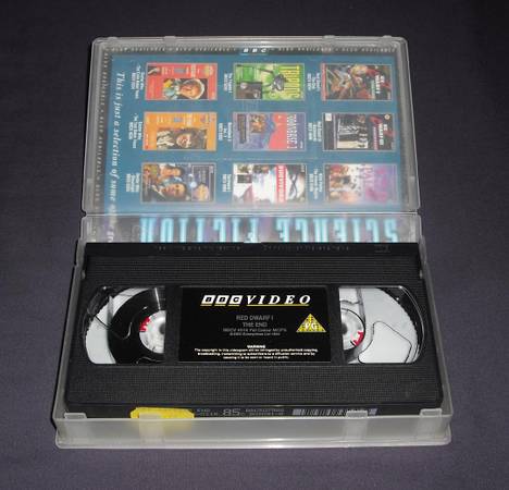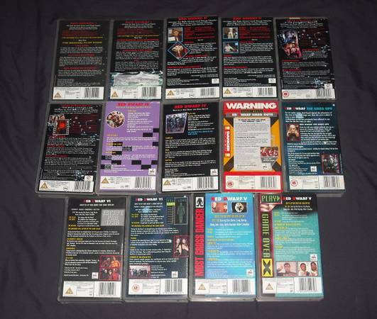 Anyway, I'd just to see them go to a fellow Red Dwarf fan so I'll take only 10.00 for all 14 tapes. It looks like it's nearly all the first generation series with two tapes each for Red Dwarf I, II, III, IV, V and VII. It also has the special edition episodes "Smeg Ups" and "Smeg Outs" instead of a season 7.
