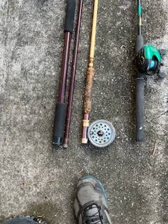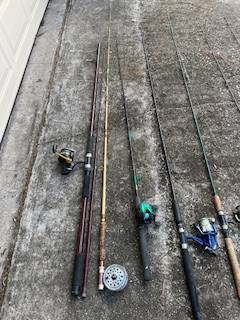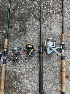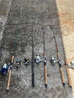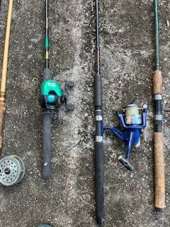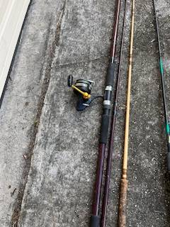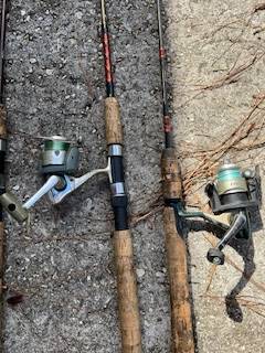 spyder line on 6 foot 6 inch pole $20 QUANTUM PT spinning reel on 7 foot Croix rod $10