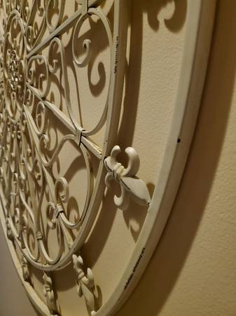 Large round 42 inch Grayson Lane metal ornamental abstract wall art. Few knicks and scratches but great statement piece in or out. Measure's 42"s Round x 1" thick. Weight = 16lbs. SLIDE MAP FOR LOCATION. UNIVERSITY AND ATLANTIC HART BRIDGE AREA. $75. Thanks Beach321