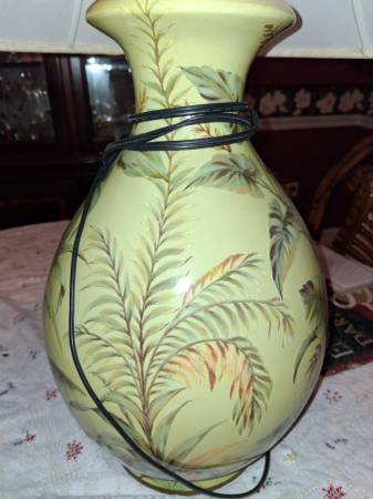 Large tropical ferns green rooms to go lamps purchase some time ago. Need tightening but come with original lamps shades. Each measure about 30 " tall and are about 14" in diameter. Smoke free home Bold and beautiful. Changing up our home and these are good condition