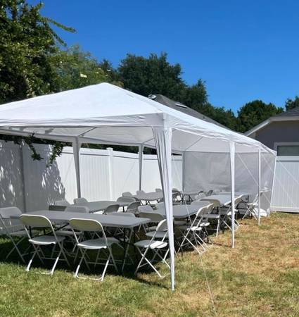 This unit is Brand New in box - never opened or used 10ft x 30ft outdoor Party Canopy Tent with an all metal frame, 7 fully removable sides walls. Great for sunny weather events. Not a pop up. Some assembly required. Non smoking home.