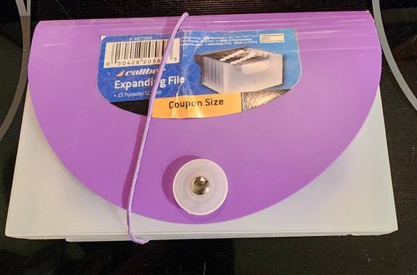 Purple And White Expandable Coupon Keeper. Made of plastic. Measures 7” L X 5” W. Cash Only. No Cash App. No Venmo. No Zelle. If you are seeing this ad the item is still available. I remove all...