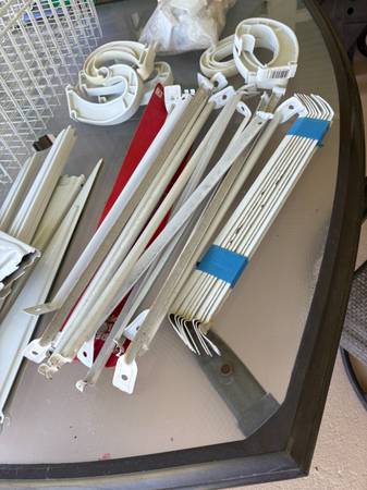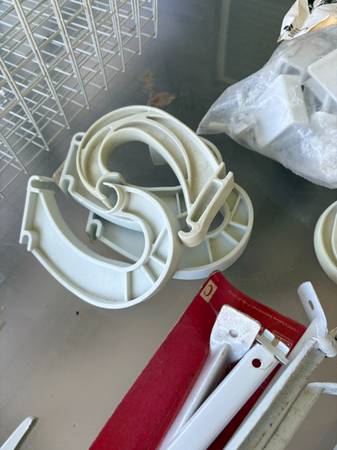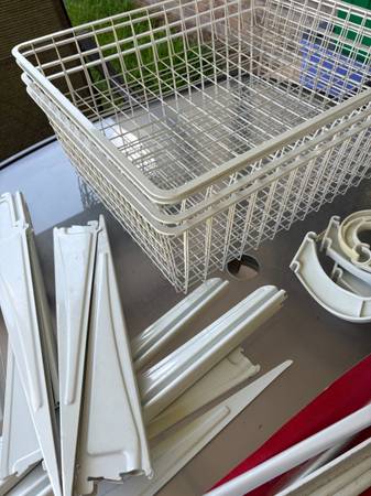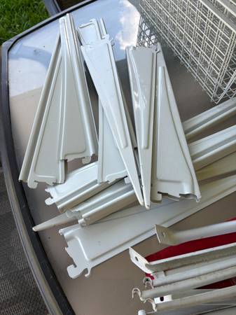 MISC. LOT OF CLOSETMAID HARDWARE. CONTAINS SHELF BRACKETS, BASKETS, BRACES, AND OTHER MISC. PARTS.