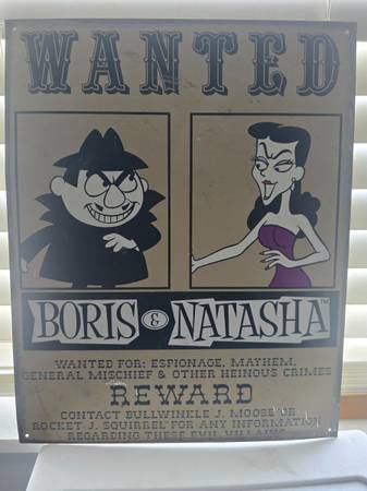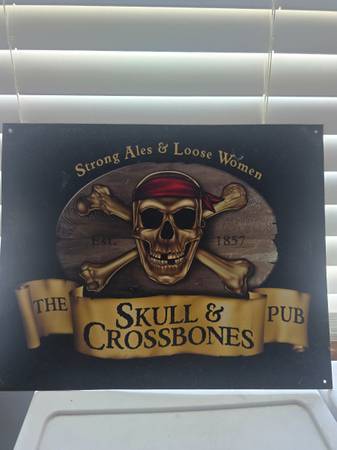 Metal Signs 1) The Flintstones 12 1/2 x 16 2) Wanted Boris and Natasha 15 x 12 3) Bat Man 16 x 12 1/2 4) Strong Ales & Loose Women The Skull Crossbones Pub Signs are in fair condition. Asking...