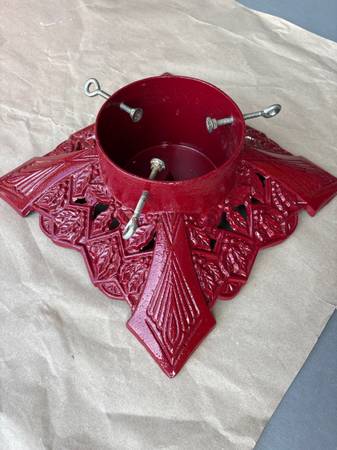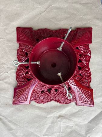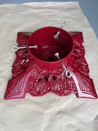 1990’s Traditions, Christmas tree stand cast-iron construction durable powder coated finish holds tree up to 6 1/2 feet. Beautiful condition. Weighs 18 pounds. 15 1/2 x 15 1/2. Comes in original box.