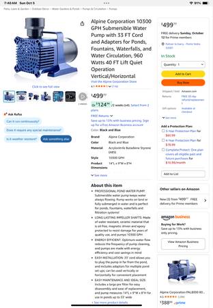 10,300 gph. Pond pump Alpine cyclone model New in box