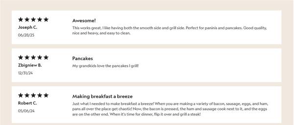 - Griddle has reversible cooking surface (ridged on one side, smooth on reverse)