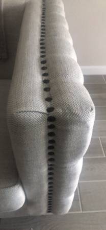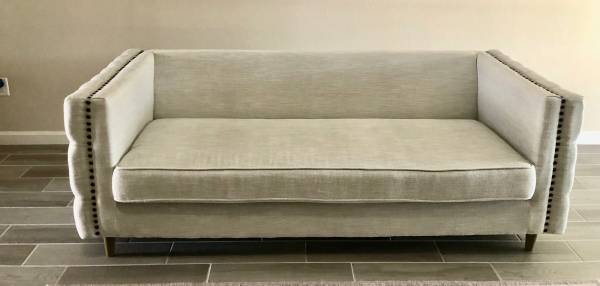 Very clean home Pet/smoke free Upholstered tweed Silver gray Excellent NEW condition Firm single cushion L82 x W32 x H30 Cushion 25