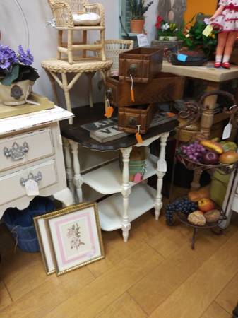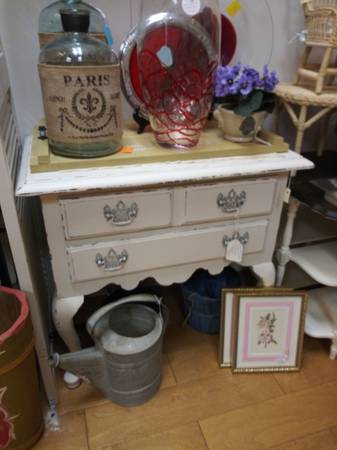 1. Cottage chic solid wood queen ann style chest 2. Console table These items as well as others can be seen at: Now and Then Antique Mall 420 College Dr. Suite 104 Middleburg, Fl 32068 We do not...