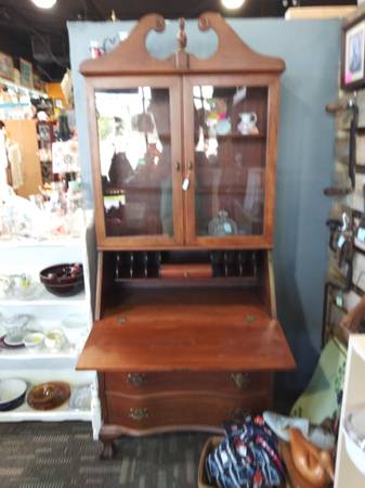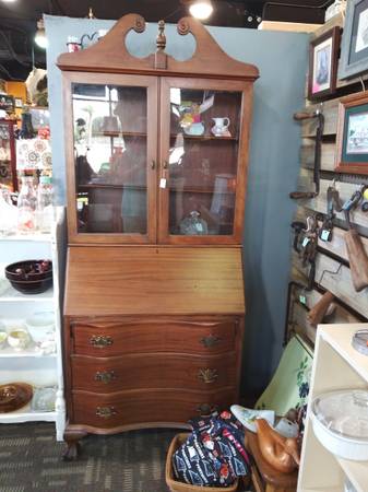 1 and 2. Vintage solid wood secretary
