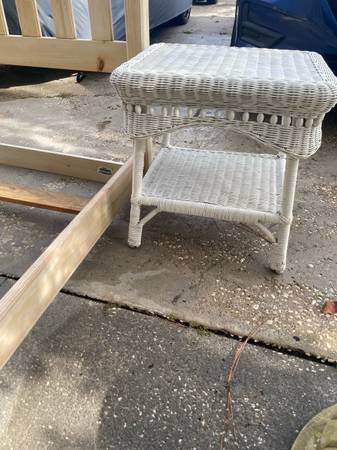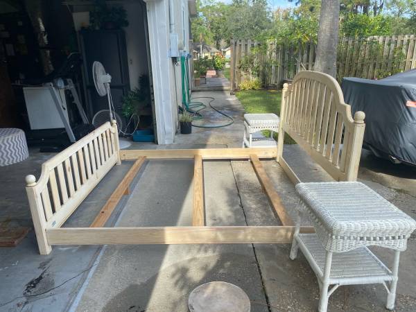 The bed frame can be used with box springs (not included) or as a platform bed - plywood included for use as a platform bed. 2 white wicker end tables are included to complete your beachy bedroom!