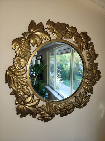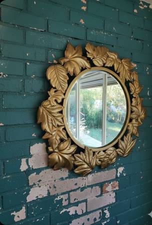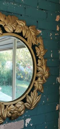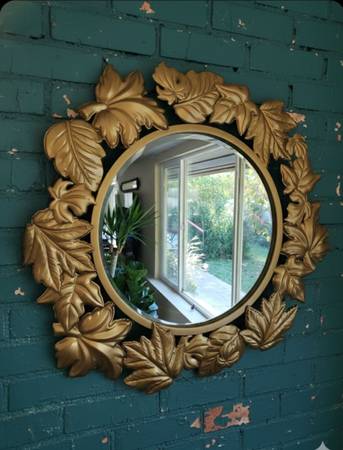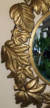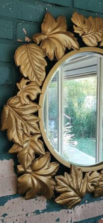 35" diameter vintage round leaf beveled mirror with a stunning brass finish, great for your home ,office or salon, definitely a point of conversation. Christmas is around the corner! Pick up...