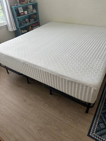 King Size Memory Foam lime brand new barely used Mattress and Metal Frame very clean and close to the beach. Call Bruce .
