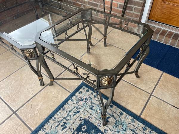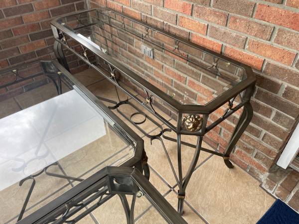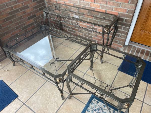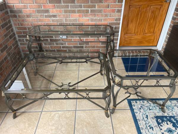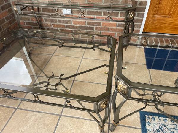 Glass topped coffee,side and entry tables. All 3 pieces are in very good shape.