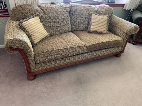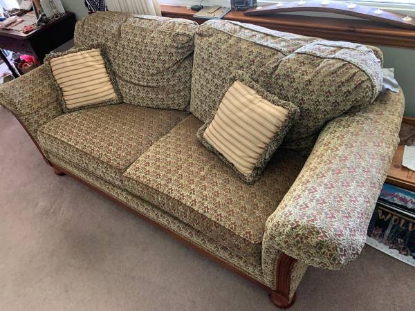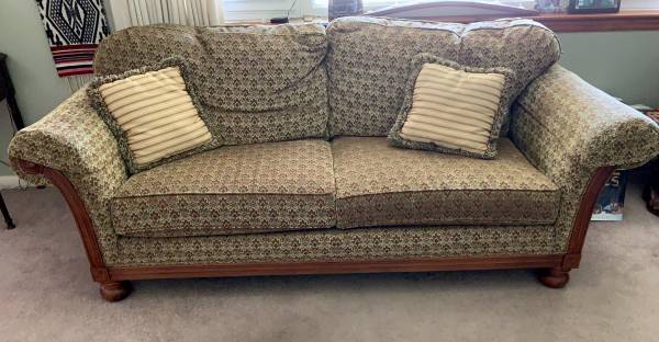 Nice couch - very clean, free of pet and smoke odors. $95! Pillows included! BARELY USED! OBO!!!! 6’-3” long x 3’-3” wide x 3’-0”(H-back) Heavy and will need 2 strong people to move it.