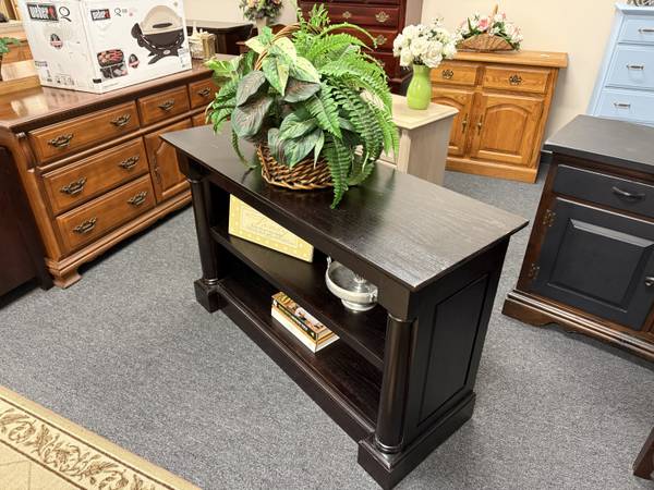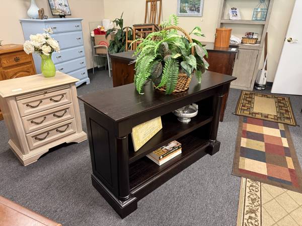 FEATURED ITEM(S): Dark Wood Bookcase/Entry Console $185.00, 51"x 18"x 46"