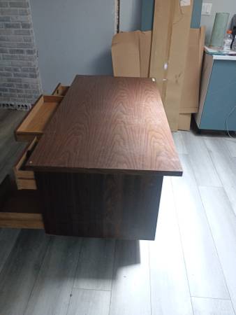 Solid wood desk with gaming chair. Both in excellent condition. Approximate size is 30"x 60"x 2.5' tall. $50 or best offer