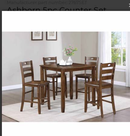 Pic of chair shown is the style, this is a tall dinette set. Set is in great condition, barely used. Table is disassembled and covered to prevent scuffing while not in use, all chairs are assembled.