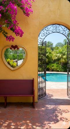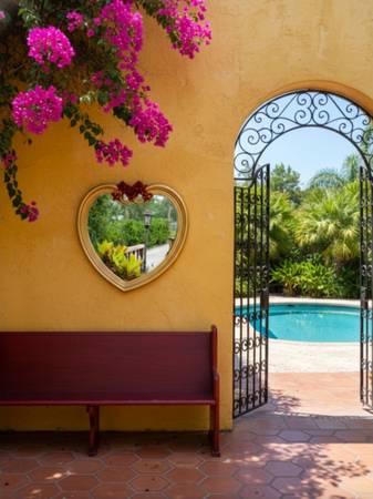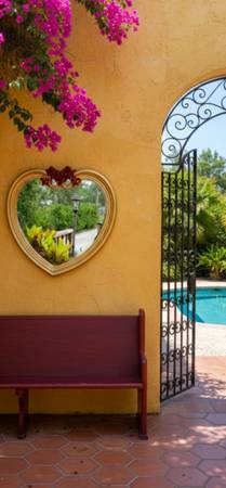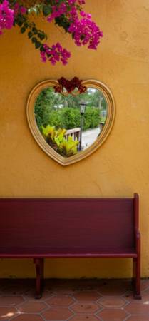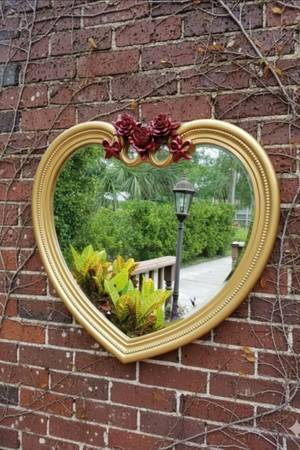 The mirror is a striking centerpiece measuring 36" high x 38" wide.