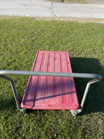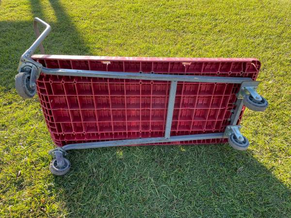 Heavy Duty Commercial Plastic & Metal with Big Wheeled Crat - Used good/fair condition it has some crack