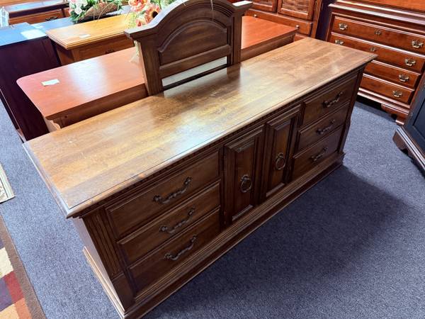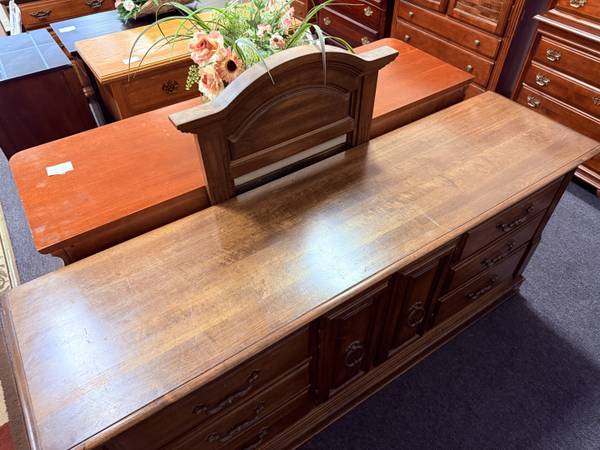 FEATURED ITEM(S): Heywood Wakefield Furniture, 9 Drawer Dresser, With Mirror, Dovetail Drawers, $225.00, 72"x 19"x 32"