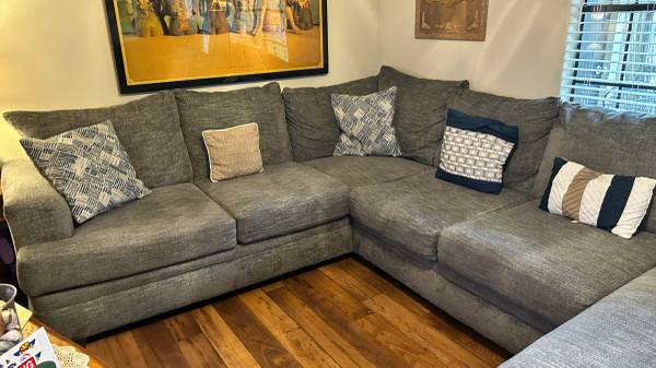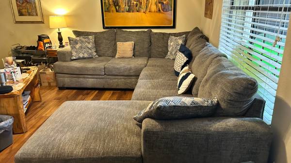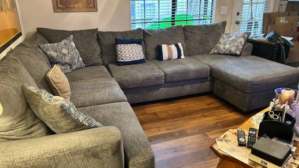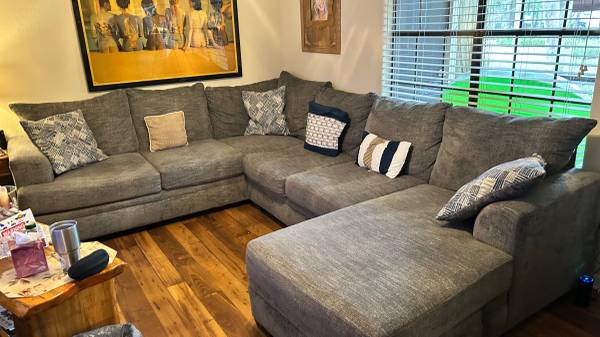 Beautiful huge gray sectional seats about eight people clean no rips no stains no tears we take good care of our stuff