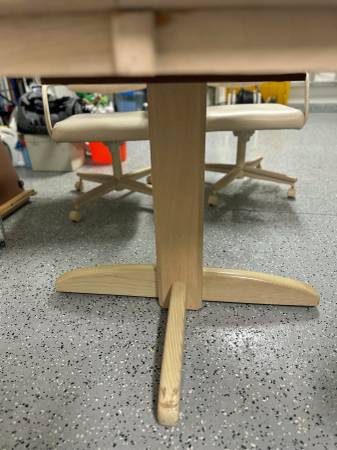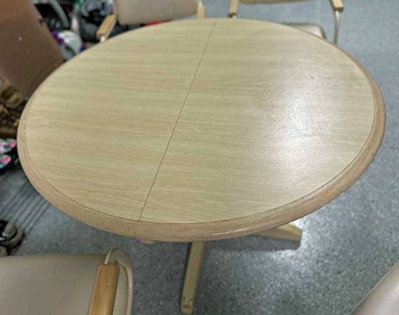 Kitchen Table. $75 or best offer Dimension - 42 inches in diameter and 29 inches tall Extension is 42 Inches by 18 inches. Dimension with extension 60 inches by 42 inches by 29 inches Top surface is...