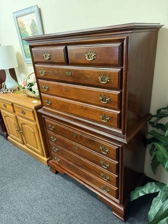 FEATURED ITEM(S): Mahogany, 6 Drawer Chest Of Drawers, Shallow And Deep Drawers, $325.00, 39"x 19"x 59"
