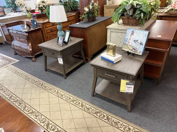 FEATURED ITEM(S): Pair Dark Grey Kincaid Furniture End Tables, $395.00 24"x 28"x 24"