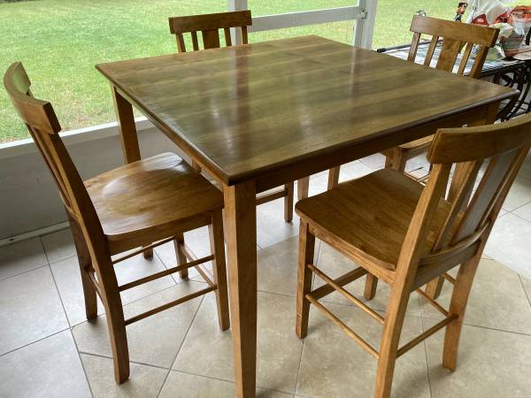 Golden oak dining table with 4 chairs $270