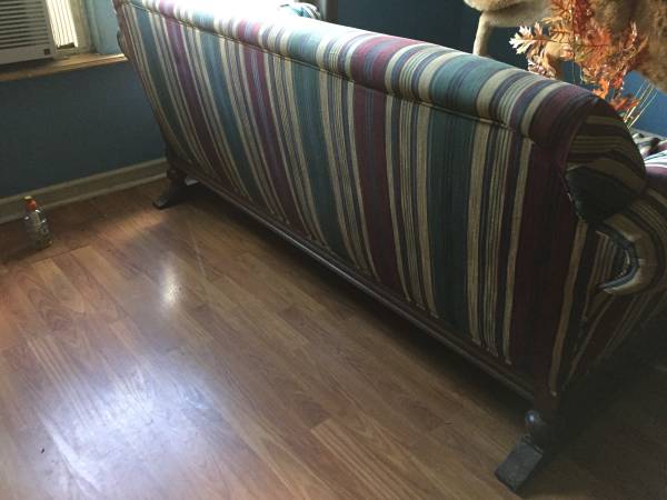 Love seat is 75" wide, 37" deep, and 32" tall. In very good condition with nice detail on the legs. Buyer is responsible for moving. Asking $120
