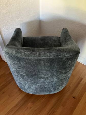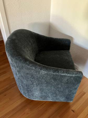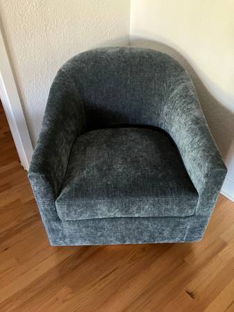 Right out of the box brand new Grayish Blue in color. The color doesn't work in the condo. Size: D32"XW29"X30"H