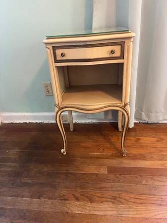 2 identical White Touraine by Drexel Dressers with Glass tops includes mirrors and nightstand Good Solid Wood